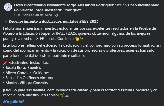 Saber másBienvenidos a la sección de Noticias del Liceo, donde encontrarán las últimas actualizaciones sobre eventos, logros y novedades importantes. Aquí compartiremos información relevante sobre actividades escolares, iniciativas destacadas y éxitos de nuestros estudiantes y personal. Manténganse informados para estar al tanto de todo lo que sucede en nuestra comunidad educativa. ¡Gracias por su interés y apoyo continuo!